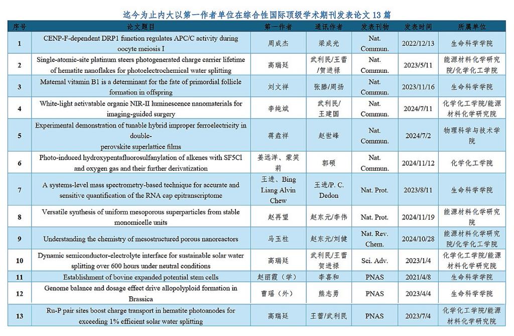 我校近年来前沿科研水平显著提升,国际顶级学术期刊成果不断取得新突破